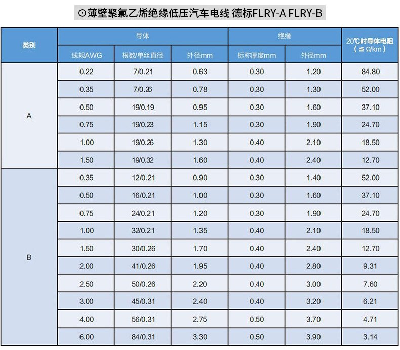 德标FLRYA薄壁低压汽车电线